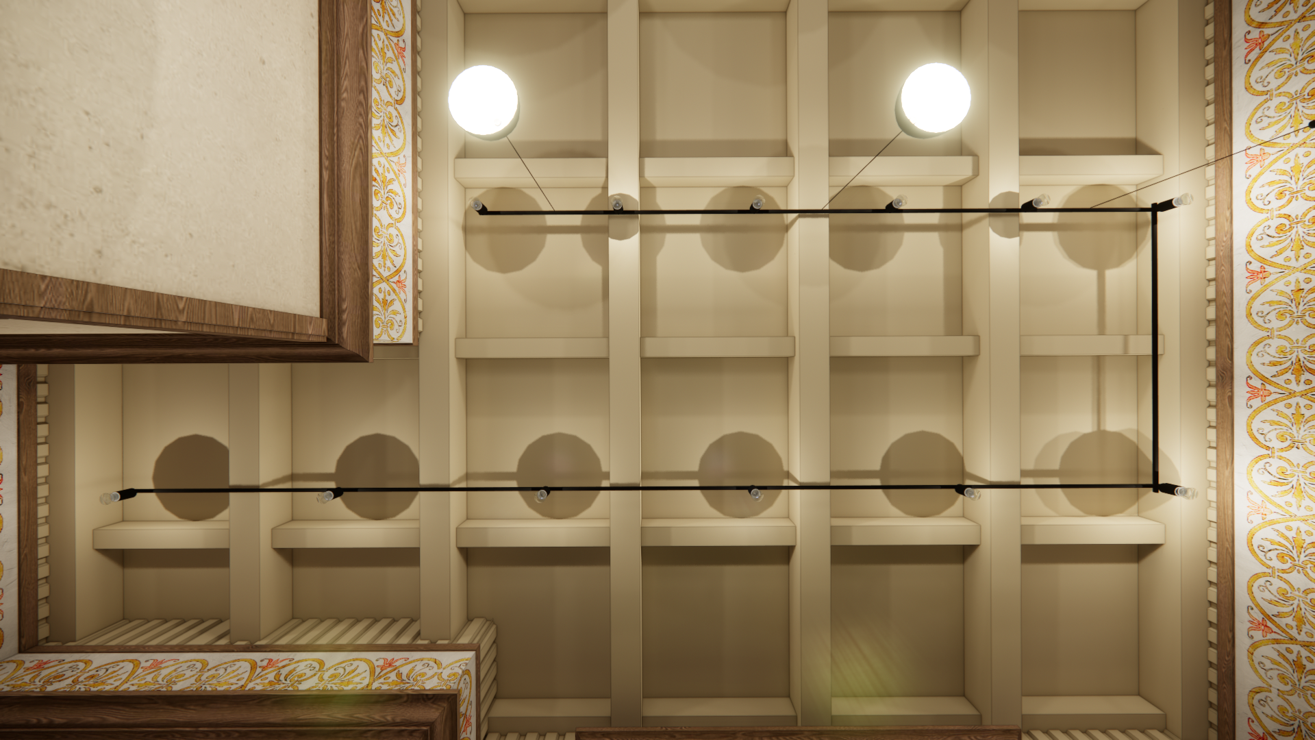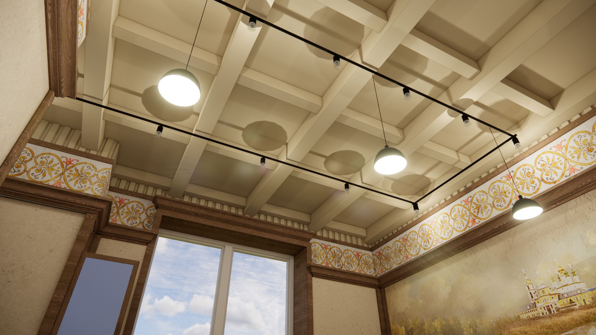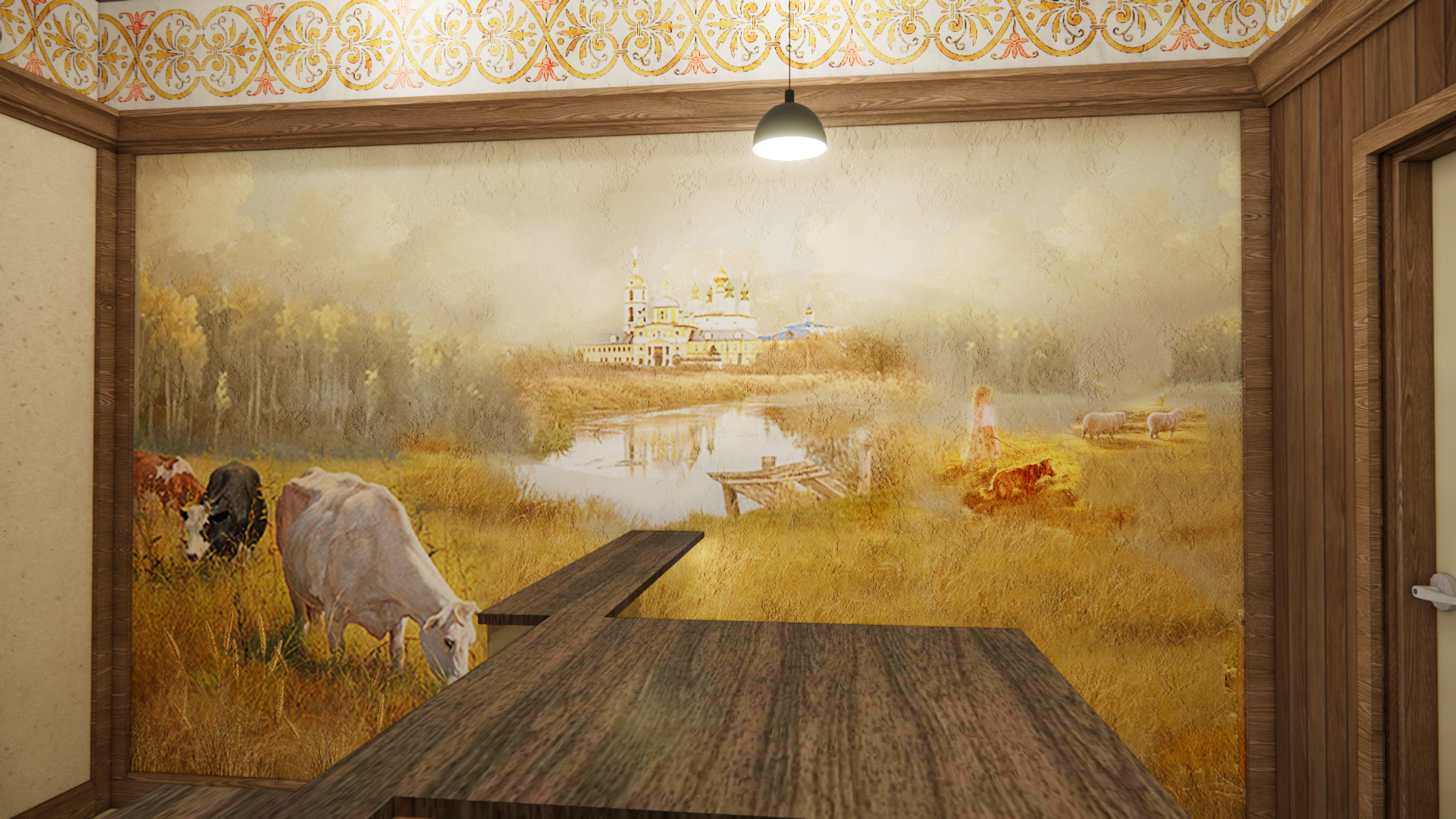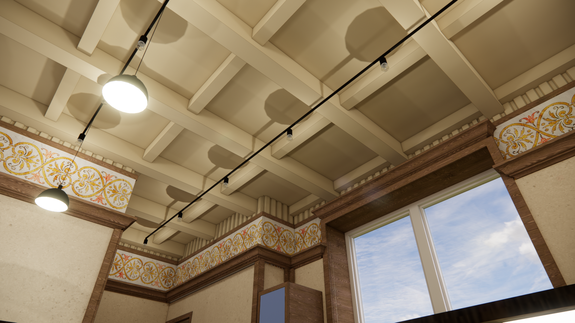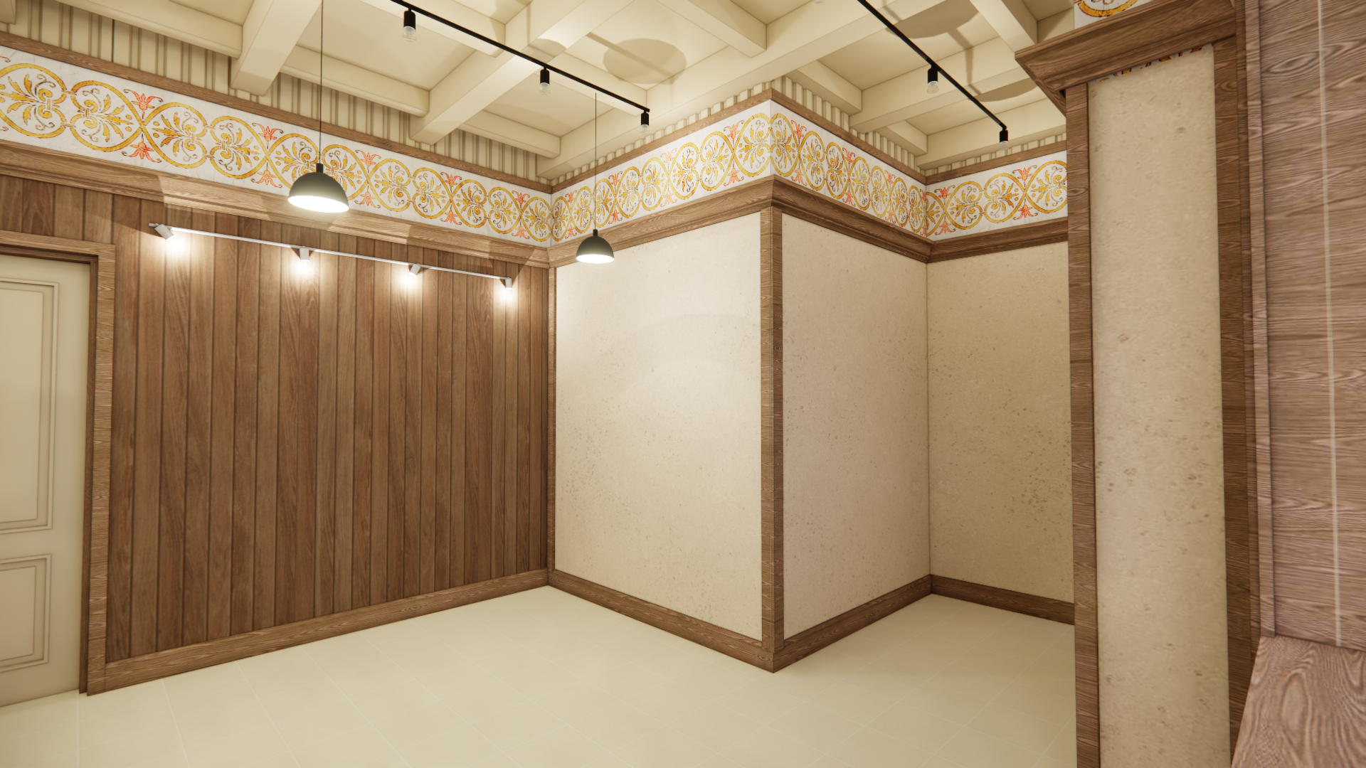 — декоративная фреска — роспись фриза на тему византийских орнаментов. Роспись по штукатурке, состаренная.