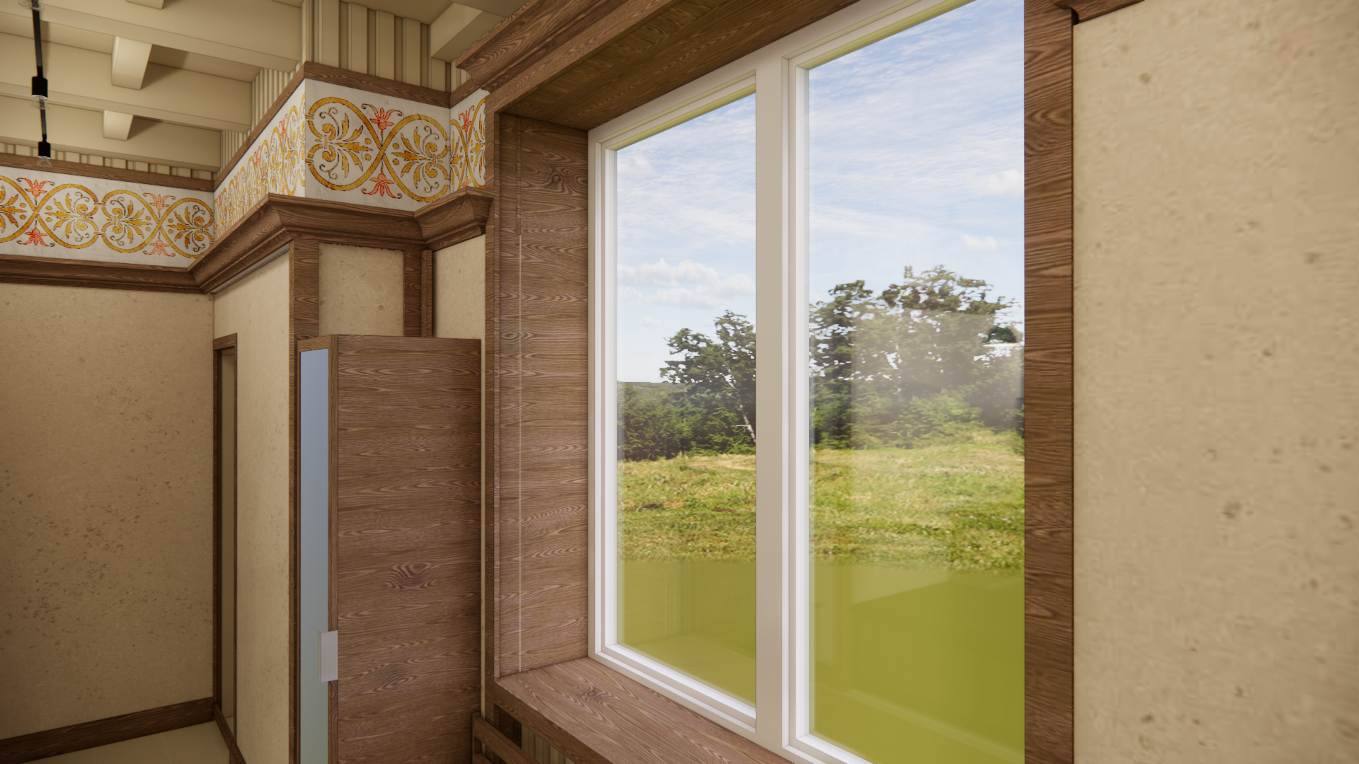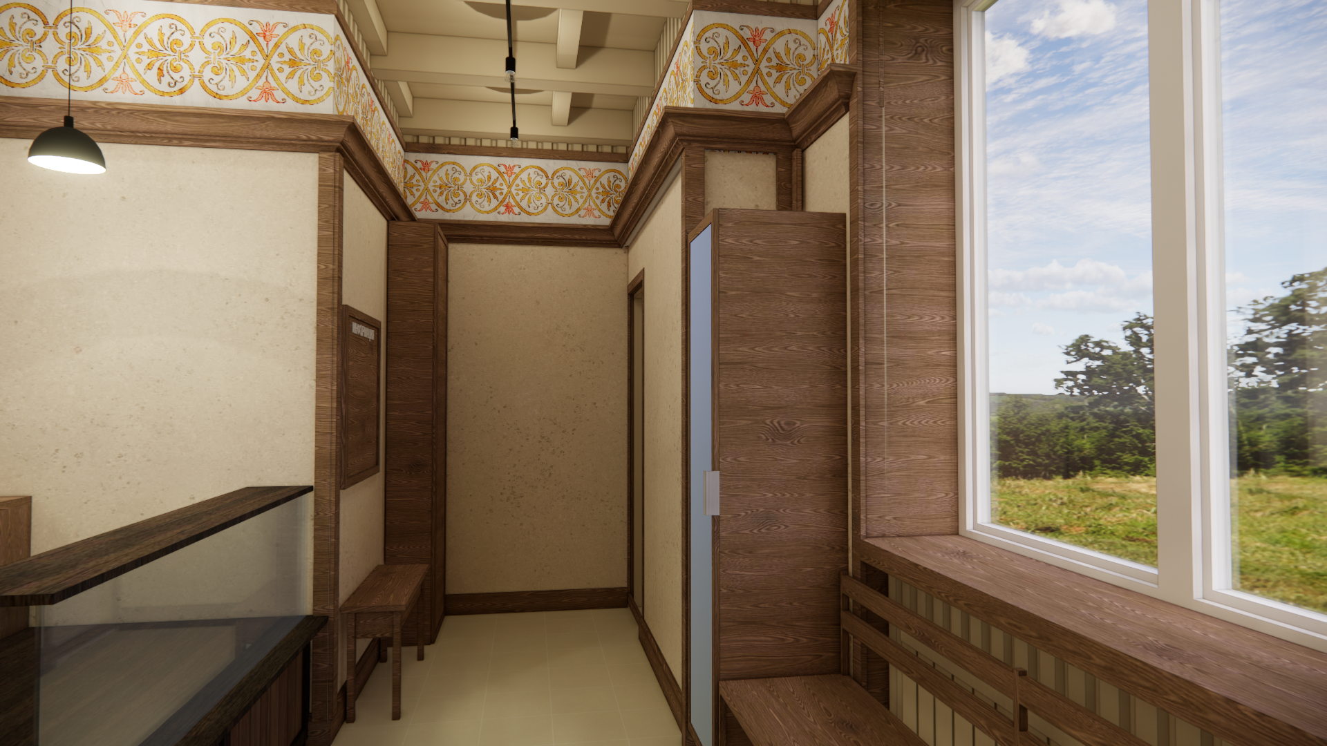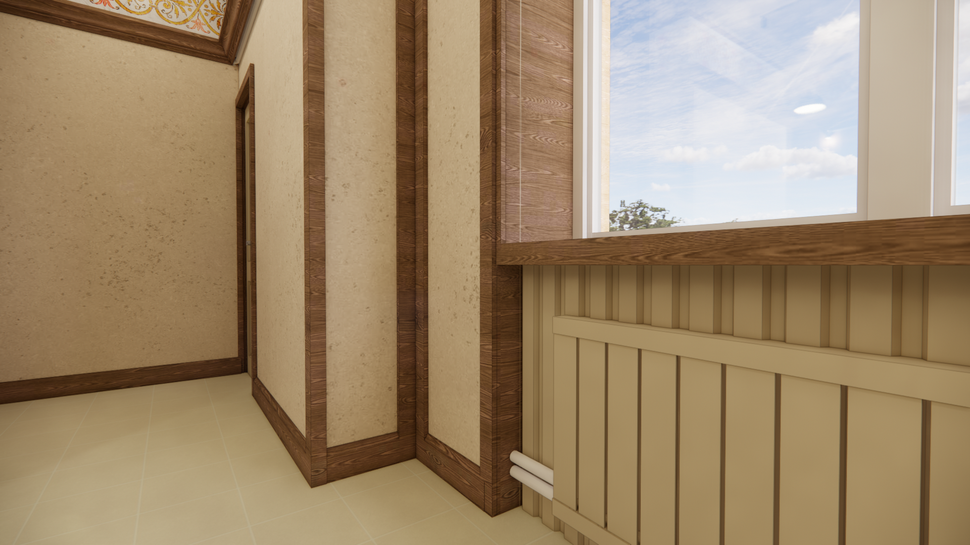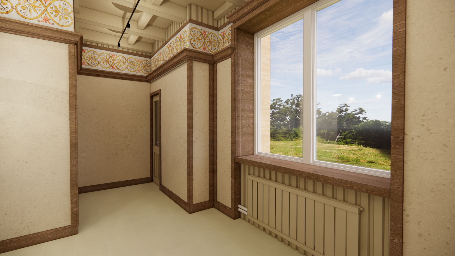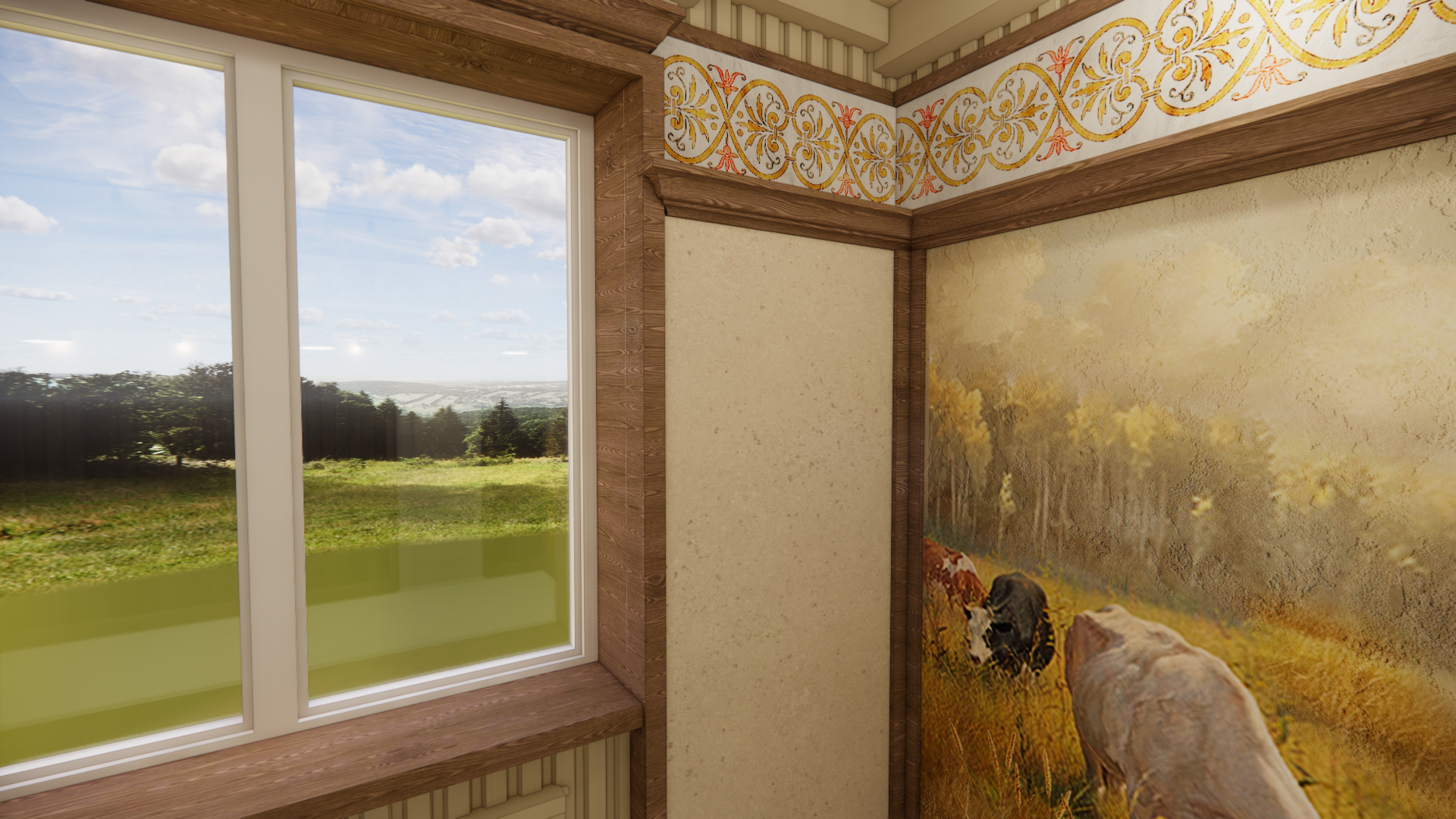 Основной материал для отделки — доска. Все формы декоративных деревянных элементов лаконичны, не нагружены.